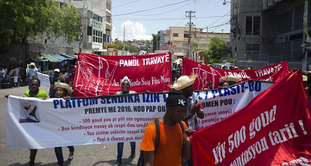Haitian workers march on May Day 2016 demanding raise in minimum wage. (Dieu Nalio Chery/AP)