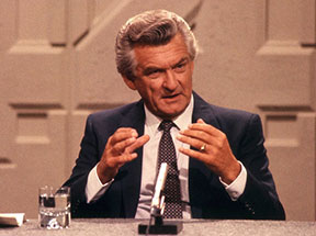 minister Bob Hawke (below). (Bottom photo: Four Corners)