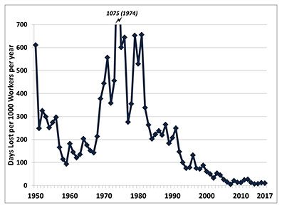 strikes fell to near zero as a result of government