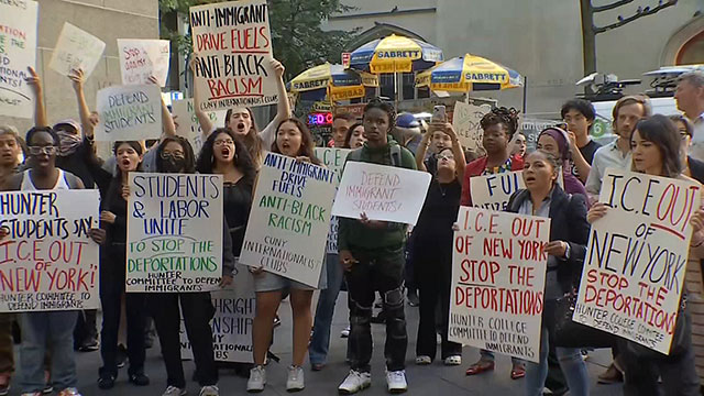On September 4, outside the City University of New York’s (CUNY) Hunter College campus, a speak-out was held in solidarity with immigrants and to demand “ICE out of New York! Stop the Deportations!” The speak-out was initiated by the Hunter Committee to Defend Immigrants (HCDI) and cosponsored by the Hunter chapter of the Professional Staff Congress (PSC), the faculty/staff union at CUNY, and by the CUNY Internationalist Clubs. The event brought out upwards of 125 people, including students, faculty and labor activists, and was covered by the cable news station NY1 as the kick-off to fall college protests.