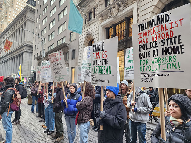 Internationalist contingent at “No War On Venezuela” demonstration outside Trump Tower on Wall Street.