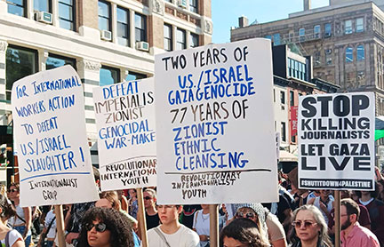 cleansing," a war crime of historic proportions. (Photo: Fred Csasznik)In the imperialist countries, the rulers have sought to smear any support to the Palestinians and opposition to the Zionist slaughter as “antisemitism,” weaponizing this slander with vicious repression. The real antisemites, fascists and white supremacists who would destroy the Jewish people support Israel, while tens of thousands of Jews in the U.S., and more elsewhere, have protested in in solidarity with Palestinians. The stunning breakout on 7 October 2023 by fighters overwhelmed the military apparatus and 30-foot-high wall that have kept over 2 million Gazans locked in for over half a century, stirred supporters of the Palestinian cause worldwide. Yet this was undercut by the indefensible indiscriminate attacks on the population of nearby areas that killed 815 civilians.6 This was used by the Zionist butchers as the pretext to murder over 100,000 Palestinians and destroy Gaza.