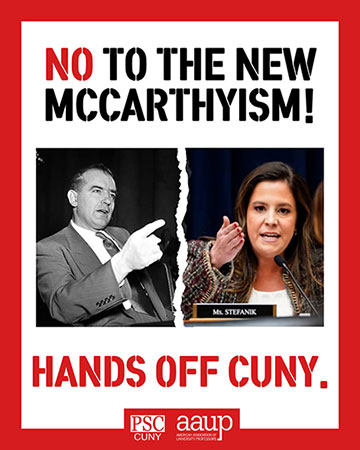 MAGA” inquisitor Elise Stefanik. Much of the House Committee’s ire was directed at education workers unions at CUNY and the University of California: the Professional Staff Congress (PSC) and United Auto Workers (UAW) Local 4811 respectively. That they have defended academic freedom and free speech rights, and protested repression against student demonstrators, was portrayed as an intolerable outrage by representatives from states with anti-union “right-to-work” laws in particular.
