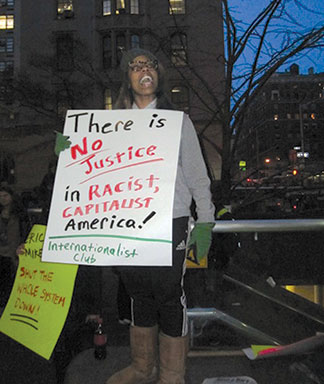 non-indictment of cop who murdered Eric Garner. (Internationalist photo)Pouring into the streets, we voiced our rage and anger over the grand jury decisions letting off the killer cops, who got away with murder, literally. It’s official: not only down South, also “up North” in New York, police can shoot down and strangle black men with impunity. In the case of Eric Garner, they couldn’t even twist the facts: it was all there on a cellphone video, viewed by millions the world over. But the murderers were not indicted, while the bystander who took the video was. It was a modern-day lynching, by the forces of “law and order.”