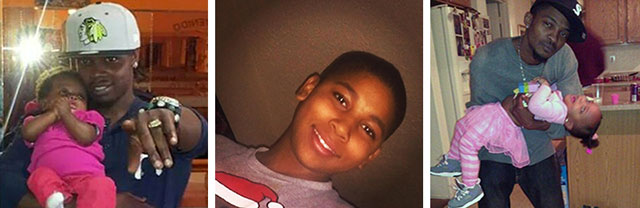Murdered by killer cops: (from left) Akai Gurley, with his 2-year-old daughter, in New York; 12-year-old Tamir Rice in Cleveland, Ohio; Rumain Brisbon, with his youngest daughter, in Phoenix, Arizona. (Facebook and family photos)
