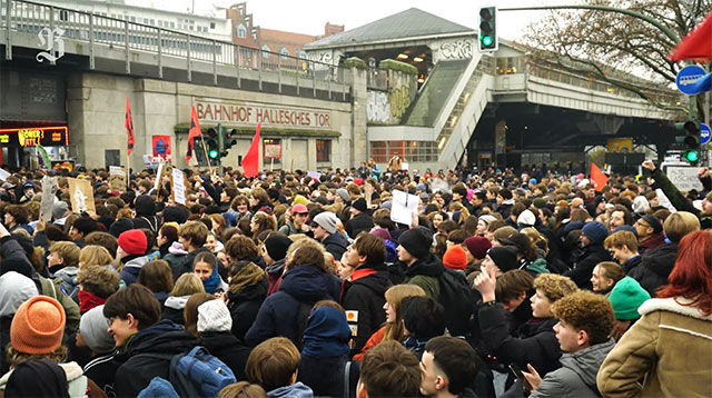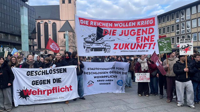 Am Freitagnachmittag, den 5. Dezember, brodelte es vor dem U-Bahn-/S-Bahnhof Hallesches Tor in Berlin. Dreitausend oder mehr Schülerinnen und Schüler versammelten sich, um ihren Widerstand gegen das „Wehrdienstmodernisierungsgesetz“ zu bekunden, über das am selben Tag im Bundestag abgestimmt werden sollte. In ganz Deutschland gingen rund 55 000 Schüler und Studenten in 87 Städten auf die Straße, um gegen dieses Gesetz zu protestieren, das bei jungen Menschen und ihren Eltern fast überall auf Ablehnung stößt. Die Botschaft der Demonstrationen war klar: „Wir sind nicht Kanonenfutter für eure Krisen.“