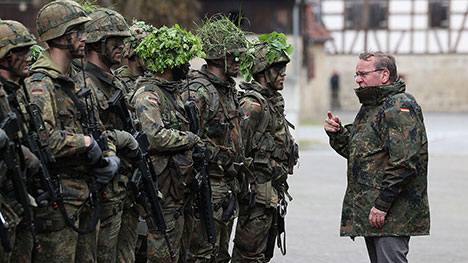 Kriegsminister Boris Pistorius beim Besuch derInfanterieschule des Heeres, Hammelburg, Mai 2023. (Foto: Yann Bombeke / DBwV)