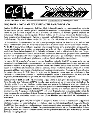portugués. Moción de apoyo a la huelga